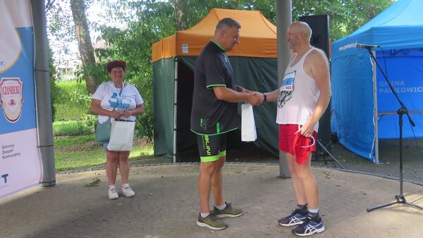 Szósty Bieg Pawłowicki za nami. 13 września pogoda dopisała, choć dla zawodników pokonujących dystans 5 km biegiem i 3,2 km marszem słońce dawało się we znaki. Wprawdzie na mecie czekały butelki z wodą, a na trasie strażacy przygotowali kurtynę wodną, ale upał zrobił swoje. Inaczej niż w latach poprzednich, zawodnicy byli wypuszczani partiami, aby nie tworzyć na starcie dużego zbiorowiska. Wcześniej była rozgrzewka dla 150 osób prowadzona przez Dawida Głowalę z UKS BUDO. Medale dla zawodników wręczał wójt gminy Franciszek Dziendziel, wiceprezes Fundacji JSW (główny partner wydarzenia) Aleksander Szymura oraz Jarosław Domin, prezes firmy JAS-FBG, która wspierała wydarzenie w minionych pięciu latach.  Koźmiński Józef z Bielska-Białej z czasem 17:13,5 oraz Griman Joanna z Rybnika z czasem 19:12,2 byli najszybsi w Biegu Pawłowickim na 5 km. W kategorii nordic walking pierwsze miejsca zajęli  Marcin Wojciechowski z Radlina (21:53,8)  oraz Katarzyna Kiełbasińska (23:13,9) z Pszczyny. Fundacja JSW ufundowała również dwie nagrody –niespodzianki dla najstarszej mieszkanki i mieszkańca gminy Pawłowice. Trafiły one do Urszuli Indyk i  Witolda Waleszczyńskiego.