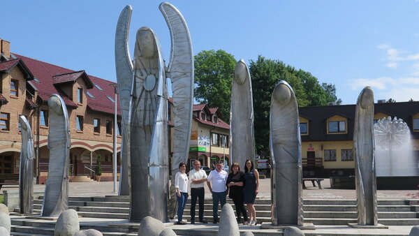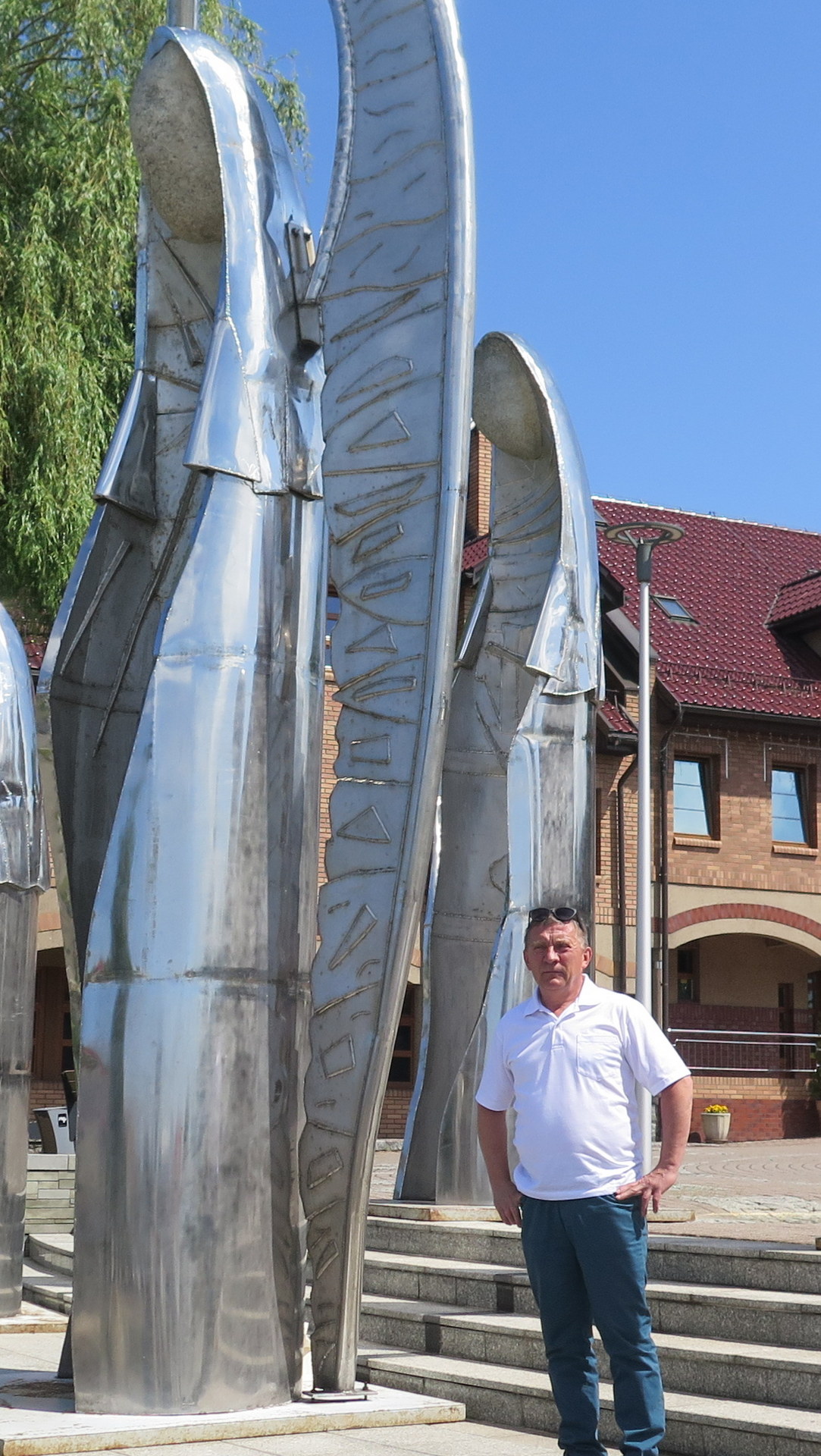 Miał okazję zobaczyć, jak prezentują się jego prace, które dotychczas były wystawiane tylko w miastach, np. Krakowie, Stalowej Woli, Wadowicach, Żorach. Spodobał mu się pomysł z wykorzystaniem schodów, jako przestrzeni ekspozycji. Jego autorem był organizator wystawy Lech Wietrzyk, który pod koniec marca przywiózł ogromne rzeźby do Pawłowic. Podczas spotkania w urzędzie Michał Batkiewicz mówił o tym, że interesował się rzeźbą już w dzieciństwie. Pierwsze prace z ceramiki tworzył w szkole podstawowej. Ich fotografie można oglądać w albumie, który artysta zadedykował wójtowi gminy Franciszkowi Dziendzielowi. Obok skromnych ceramik z pierwszych lat twórczości, w książce są również zdjęcia rzeźb wykonanych jako replika ołtarza z kościoła Mariackiego dla kościoła Jana Kantego w Chicago. Odwzorowanie dzieła Wita Stwosza (207 postaci z drewna) zajęło artyście dziesięć lat! Anioły, które stoją w Pawłowicach, są typem rzeźby plenerowej, eksponowanej w przestrzeni publicznej. Już wkrótce wystawa zostanie wywieziona z Pawłowic, ale za nim na dobre opuści gminę Pawłowice, stanie jeszcze przy kościele św. Mikołaja w Warszowicach.