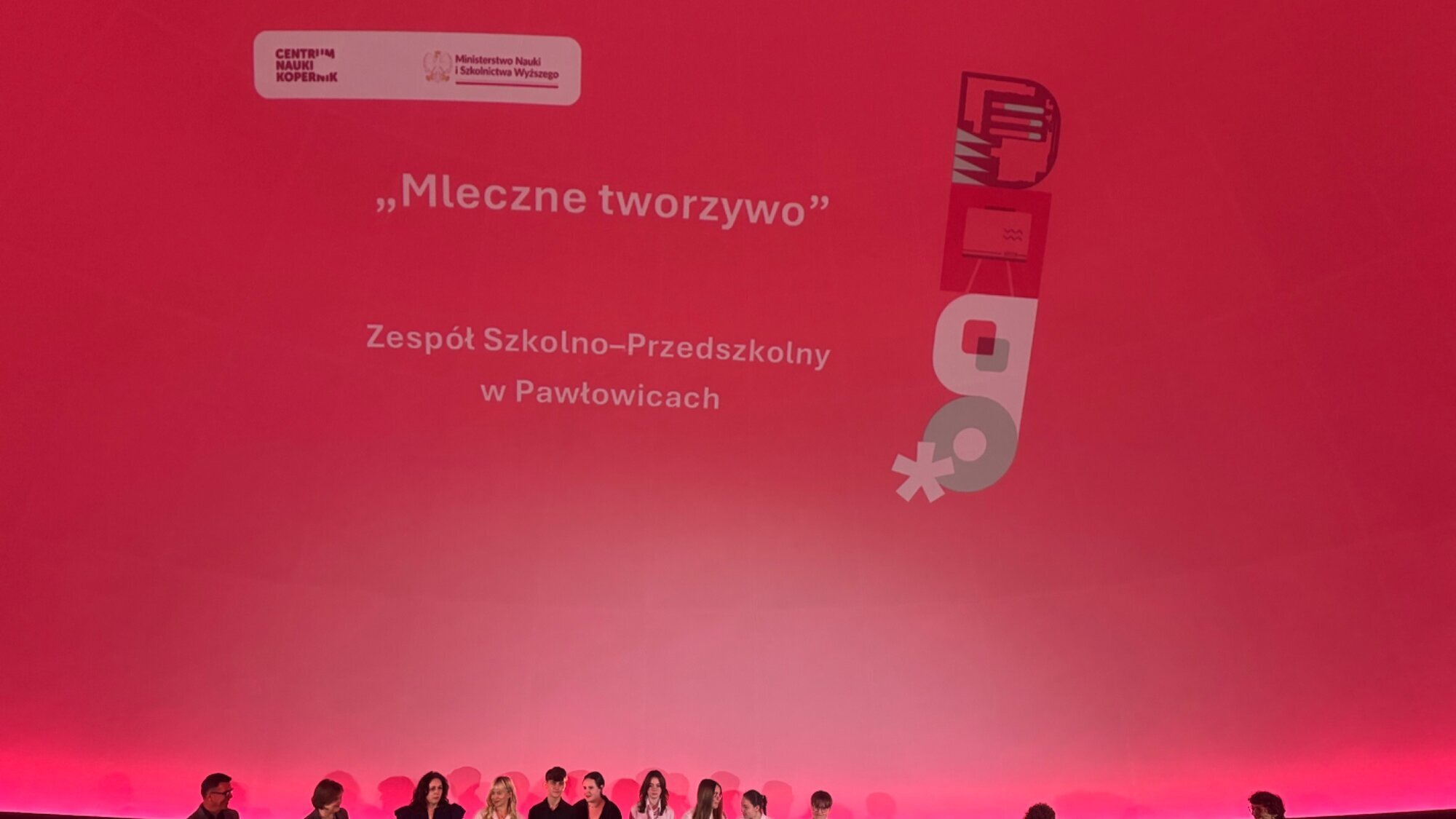 24 kwietnia 2025 r. uczniowie z Zespołu Szkolno - Przedszkolnego w Pawłowicach, z klasy 7c: Zuzanna Bojarska, Amelia Sobolewska, Rozalia Rajska, Natalia Szeja, Julian Czapiewski i Wiktor Woźny pod opieką nauczycieli Joanny Gryboś i Moniki Sławackiej wzięli udział w finałowej gali rozdania nagród ogólnopolskiego konkursu „Nauka Dla Ciebie ProtoTypuj” w Centrum Nauki Kopernik w Warszawie.