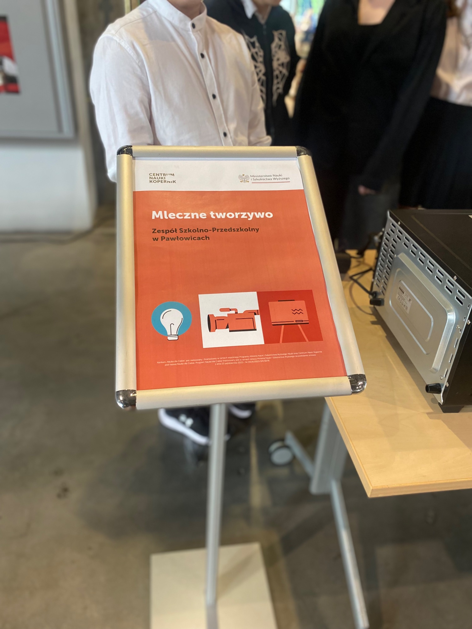 Zostali oni laureatami konkursu, a ich innowacyjny pomysł został doceniony przez Minister Nauki i Szkolnictwa Wyższego panią Karolinę Zioło - Pużuk oraz dyrektora naczelnego Centrum Nauki Kopernik Roberta Firmhofera. Młodzi naukowcy mogli zaprezentować swoją pomoc naukową na specjalnej wystawie w murach Centrum Nauki Kopernik, gdzie wszyscy zwiedzający mogli zobaczyć i dowiedzieć się więcej o mlecznym tworzywie - wygranej pracy naszych uczniów.