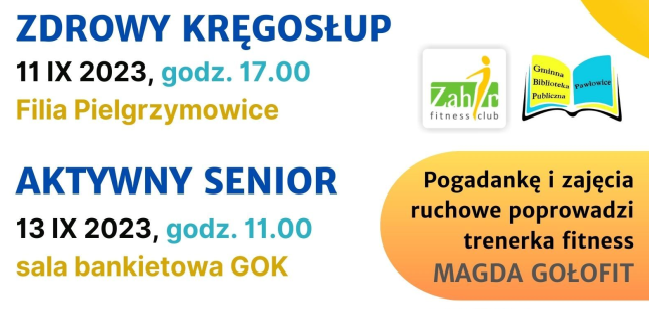 11 września 2023 r. o godzinie 17:00 w filii biblioteki w Pielgrzymowicach odbędą się zajęcia, które wpłyną na zdrowie naszego kręgosłupa.