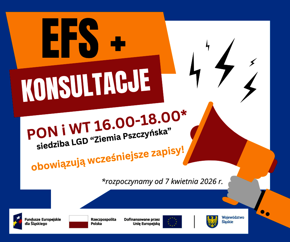 LGD Ziemia Pszczyńska zaprasza podmioty zainteresowane ubieganiem się o środki w ramach grantów z Europejskiego Funduszu Społecznego Plus do udziału w spotkaniach konsultacyjnych. Indywidualne spotkania będą odbywać się w poniedziałki i wtorki w siedzibie Stowarzyszenia LGD „Ziemia Pszczyńska” w godz. od 16.00 do 18.00.