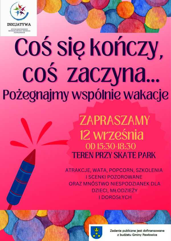 12 września, od 15:30 do 18:30, teren przy skate park w Pawłowicach.