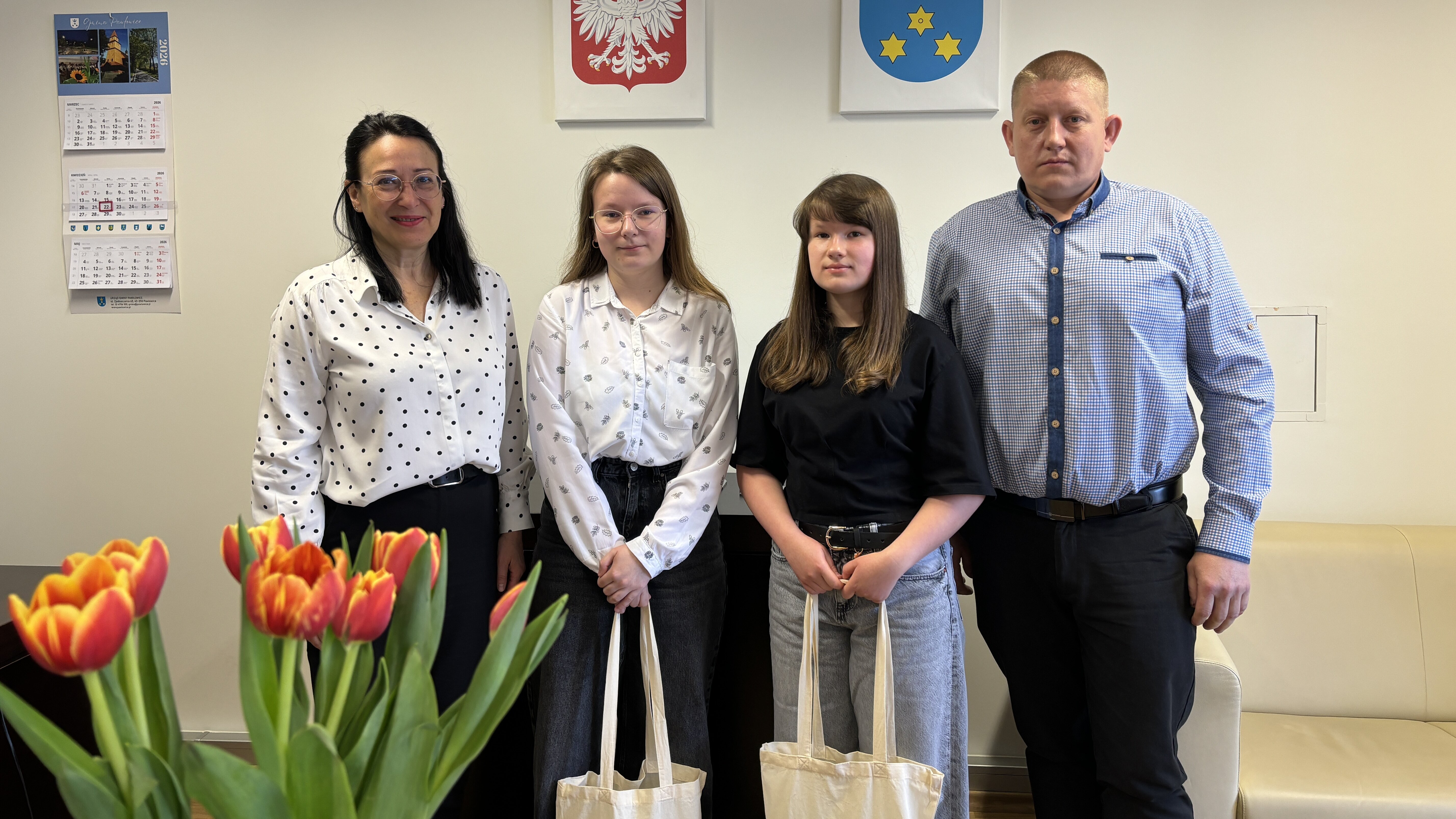 22 kwietnia 2026 r. w Urzędzie Gminy Pawłowice odbyło się spotkanie, podczas którego Joanna Śmieja gościła dwie utalentowane mieszkanki Warszowic – siostry Emilię i Bernadetę Szklanny. Okazją do wizyty były ich osiągnięcia w Ogólnopolskim Konkursie Strażackim, w którym z powodzeniem pokonywały kolejne etapy rywalizacji.