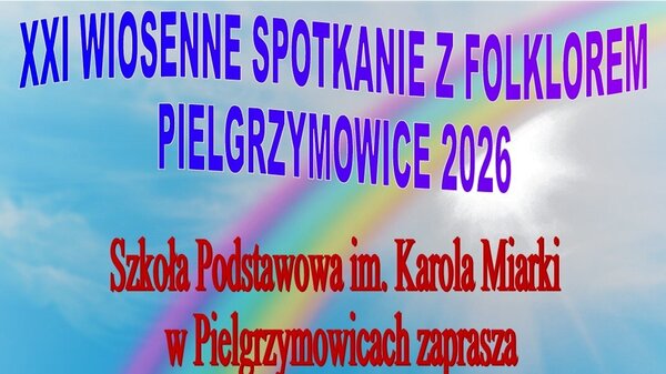 24 kwietnia 2026 r. w Szkole Podstawowej im. Karola Miarki w Pielgrzymowicach odbędzie się tradycyjne, już XXI Wiosenne Spotkanie z Folklorem. Serdecznie zapraszamy miłośników gwary i pieśni do wzięcia udziału w tym wydarzeniu. W programie przesłuchania konkursowe oraz występy artystyczne zaproszonych gości. Nie zabraknie, jak co roku, przedstawienia gwarowego w wykonaniu nauczycieli. Szczegóły na plakacie.